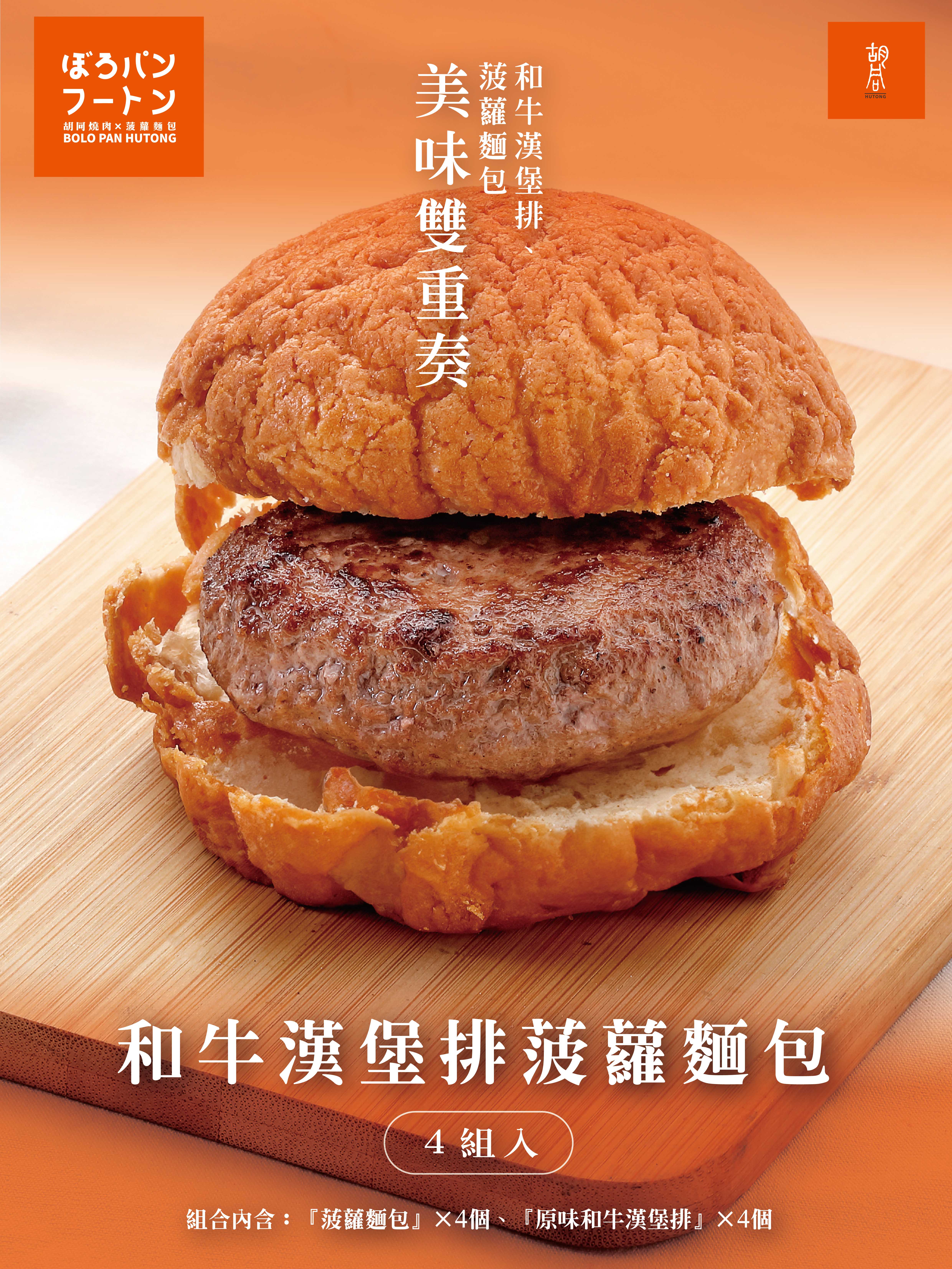 話題聯名再升級!胡同攜手人氣麵包名店 菠蘿麵包 ぼろパン BOLO PAN,隆重推出「和牛漢堡肉菠蘿麵包 4 入組」。