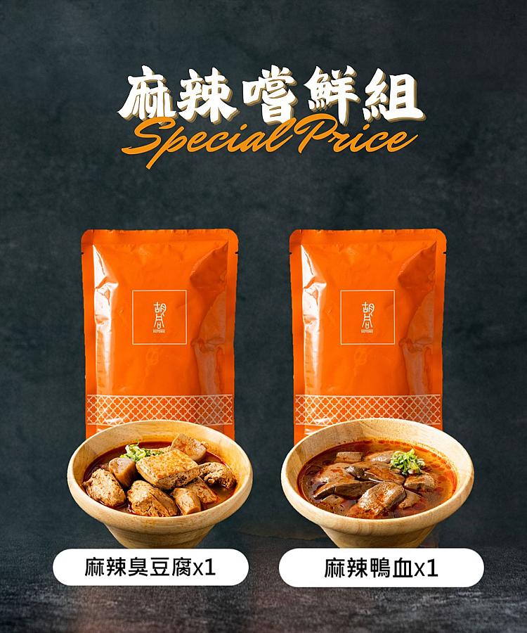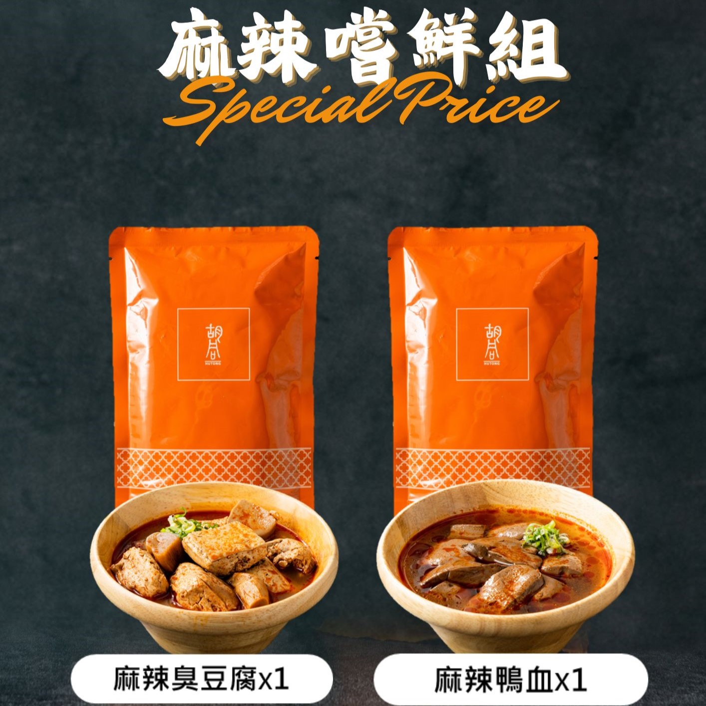 一次集結店內兩大麻辣人氣王:胡同麻辣鴨血+胡同麻辣臭豆腐,用最經典的風味組合,