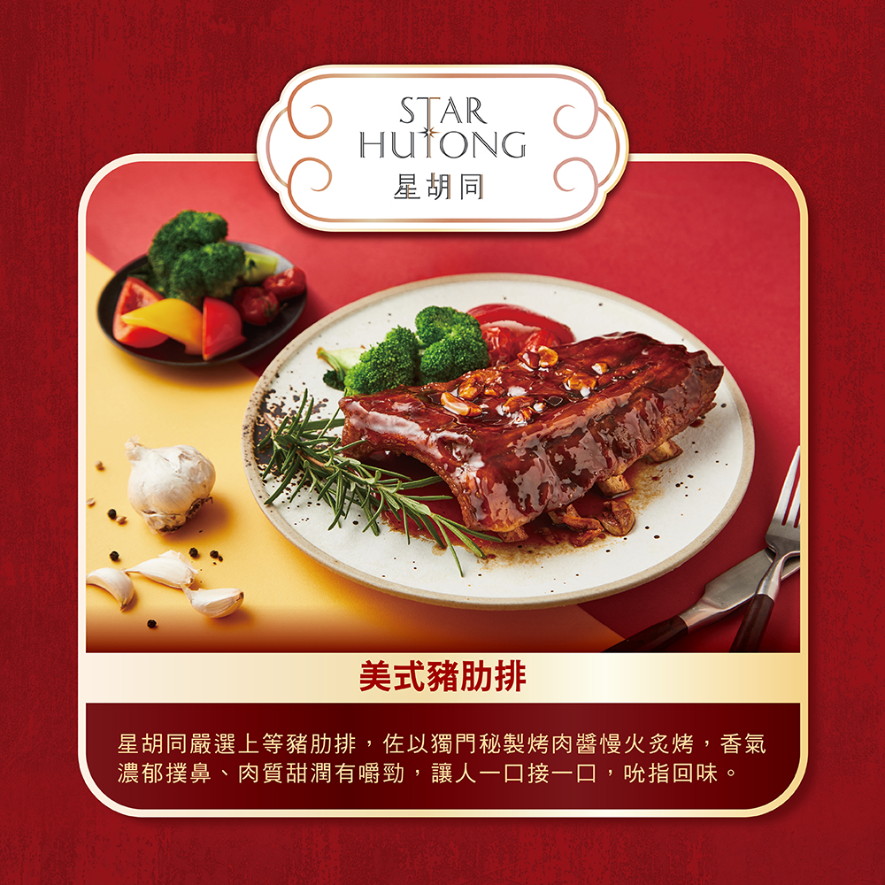星胡同美式豬肋排採冷凍宅配出貨,完整鎖住風味與肉汁,只需簡單加熱即可快速上桌