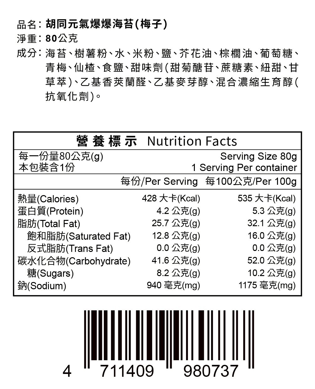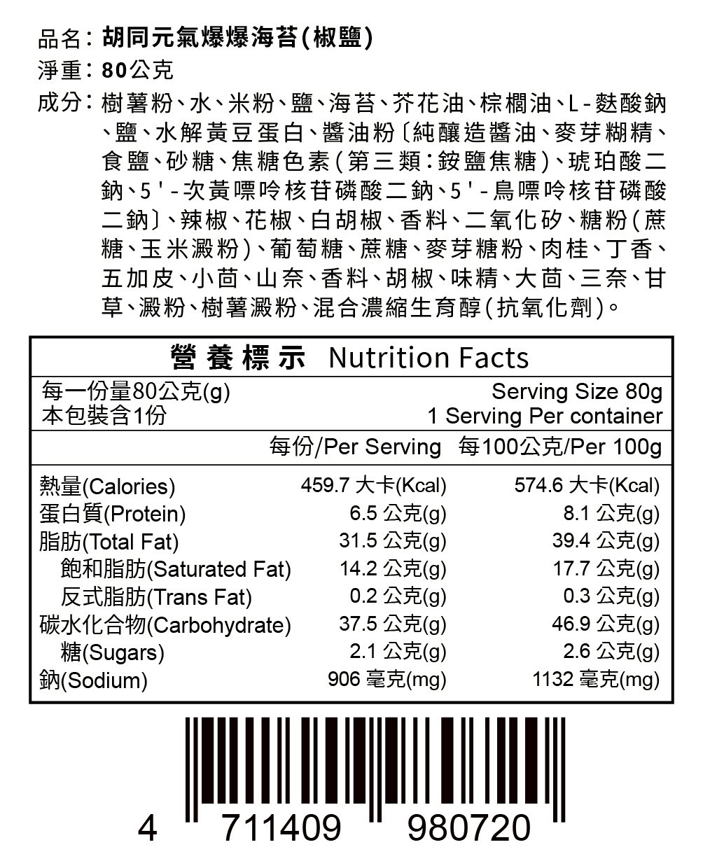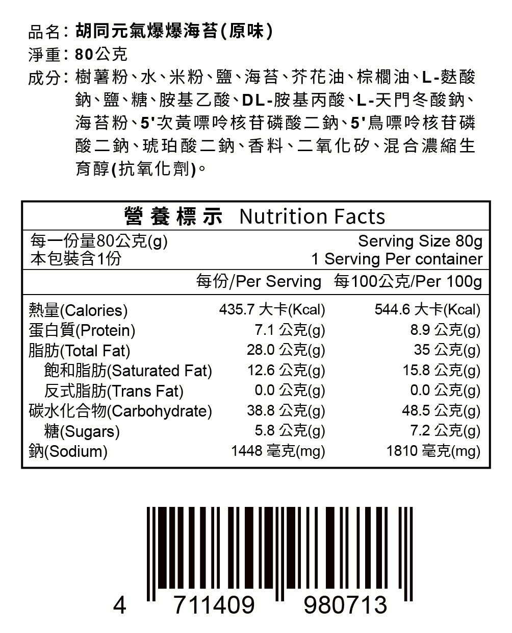 胡同元氣爆爆海苔,顛覆你對海苔零食的想像!嚴選高品質海苔片,透過獨家「恆溫酥炸工法」鎖住海苔香氣,